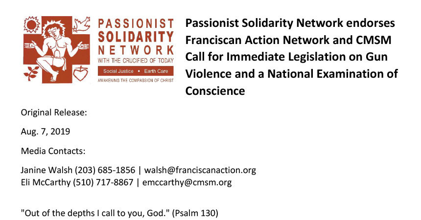 Ingrandisci immagine PASSIONIST SOLIDARITY NETWORKLegislation on Gun Violence PASSIONIST SOLIDARITY NETWORK – Legislation on Gun Violence Di A.M.|2019-08-28T11:26:34+02:00Agosto 28th, 2019|JPIC|0 Commenti Share This Story, Choose Your Platform!