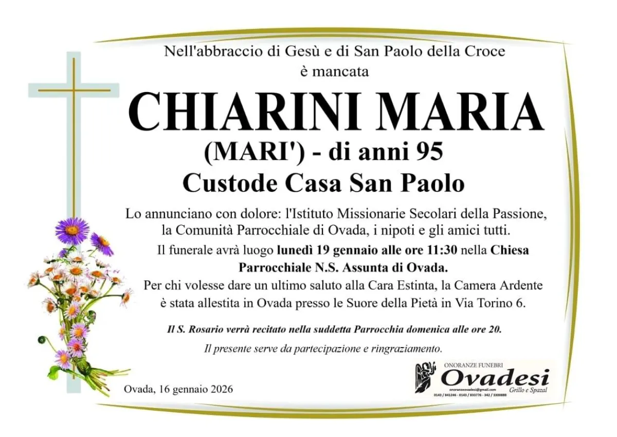 Ingrandisci immagine † Chiarini Maria Di A.M.|2026-01-16T21:27:53+01:00Gennaio 16th, 2026|Defunti|0 Commenti Share This Story, Choose Your Platform!