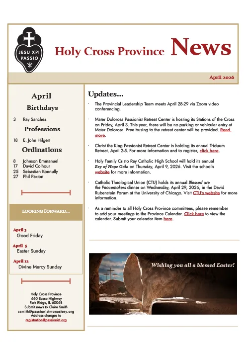 PASSIONIST NEWS NOTESApril 2026 Galleria PASSIONIST NEWS NOTESApril 2026 Pubblicazioni PASSIONIST NEWS NOTESApril 2026 Di A.M.|2026-04-07T10:43:16+02:00Aprile 7th, 2026|Pubblicazioni|0 Commenti Continua a leggere