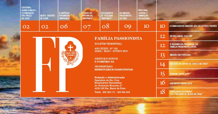 Ingrandisci immagine Boletín “FAMÍLIA PASSIONISTA” de los Passionistas en PortugalABRIL / MAIO / JUNHO – 2019 FAMÍLA PASSIONISTA Abril / Maio / Junho – 2019 Di A.M.|2020-05-18T09:10:27+02:00Luglio 1st, 2019|Notizie, Pubblicazioni|0 Commenti Share This Story, Choose Your Platform!