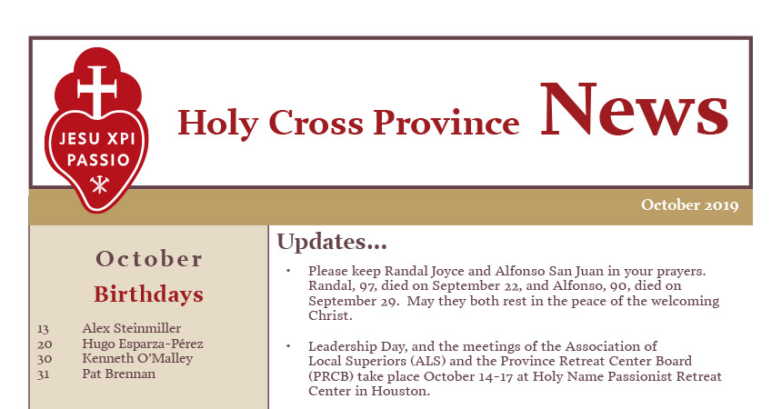 FAMÍLA PASSIONISTA - JULHO / AGOSTO / SETEMBRO – 2019