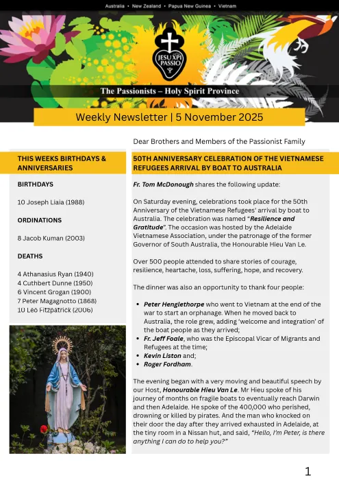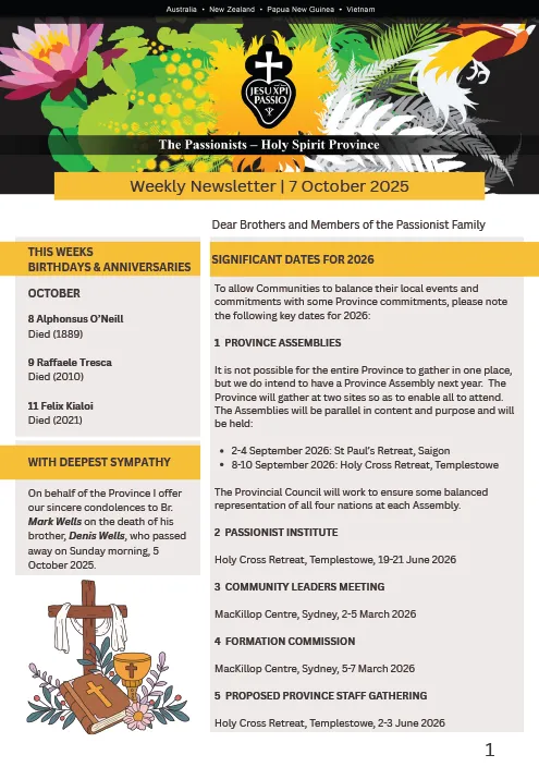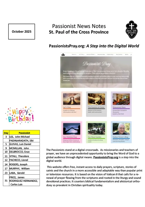 THE PASSIONISTS – HOLY SPIRIT PROVINCEOctober 2025 Galleria THE PASSIONISTS – HOLY SPIRIT PROVINCEOctober 2025 Pubblicazioni THE PASSIONISTS – HOLY SPIRIT PROVINCEOctober 2025 Di A.M.|2025-11-04T12:21:44+01:00Novembre 4th, 2025|Pubblicazioni|0 Commenti Continua a leggere