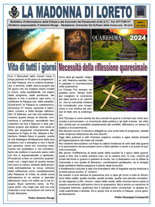 La Madonna di Loreto N°2-2024 Galleria La Madonna di Loreto N°2-2024 Pubblicazioni La Madonna di Loreto N°2-2024 Di Javier|2024-02-17T10:37:47+01:00Febbraio 17th, 2024|Pubblicazioni|0 Commenti Continua a leggere
