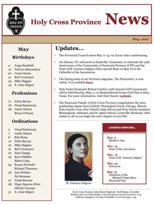 Cari fratelli, sorelle e amici della Famiglia Passionista, continuando il [...]