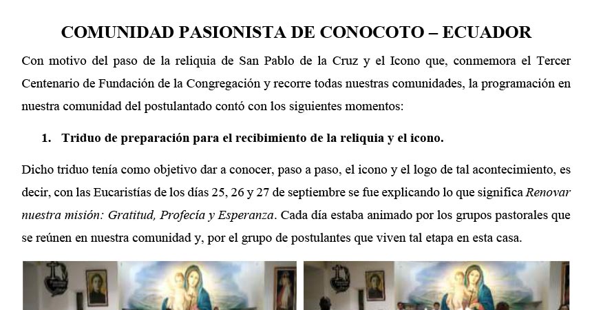 Ver imagen más grande VISITA DEL ICONO Y LA RELIQUIA DE SAN PABLO DE LA CRUZ ECUADOR VISITA DEL ICONO Y LA RELIQUIA DE SAN PABLO DE LA CRUZ – ECUADOR Por A.M.|2019-10-18T10:02:24+02:00octubre 18th, 2019|Noticias|Sin comentarios Share This Story, Choose Your Platform!